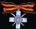 Военный орден “Георгиевский крест с изображением герба Войска Донского” за заслуги в боях с красными войсками. В медальоне старинный донской герб — олень, пронзенный стрелой; вокруг герба — надпись “Всевеликое Войско Донское”; на оборотной стороне -- “Защитнику вольного Дона” и “1917-1918”