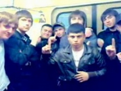 Азербайджанцы и армяне из нацистской группировки «Черные ястребы» куражатся над русскими в московском метро и снимают себя на камеру мобильного телефона. Источник фото: «Свободная Пресса» http://svpressa.ru/society/news/15214/
