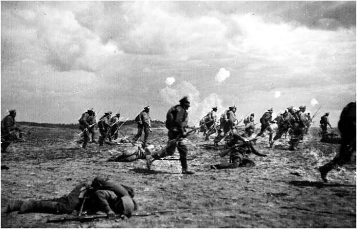 Атака 1-го батальона 14-го гренадерского Грузинского полка во время шрапнельного огня. 1915 год.