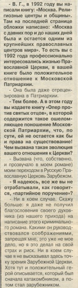 Интервью В.Черкасова - Георгиевского гл. редактору газеты 'Радонеж' Е.Никифорову 'Я ХОТЕЛ ПУСТИТЬ ПОД ОТКОС ВСЮ ПАТРИАРШУЮ ЦЕРКОВЬ'