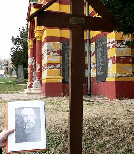 Фотография отца П.Н.Врангеля - барона Николая Егоровича (держат в руке перед фотообъективом) и крест на его могиле (скончался в 1923 году) в сербском городе Сремские Карловцы, где с 1922 года был штаб эвакуированной из Крыма Русской Армии Главнокомандующего генерала барона П.Н.Врангеля и проживала его семья до 1926 года.