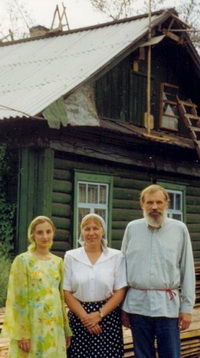 1999 год, Барнаул, Алтайский край. У домового храма Барнаульского прихода Русской Православной Церкви Заграницей. В.Г.Черкасов-Георгиевский с супругой Ириной (рядом) и прихожанкой здешней общины.