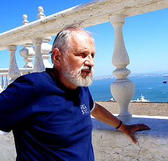 НА ФОТО: Лето 2011 года, Португалия, Лиссабон. В.Г.Черкасов-Георгиевский на крыше монастыря Святого Винсента да Фора, где королевская усыпальница; за баллюстрадой -- Атлантический океан